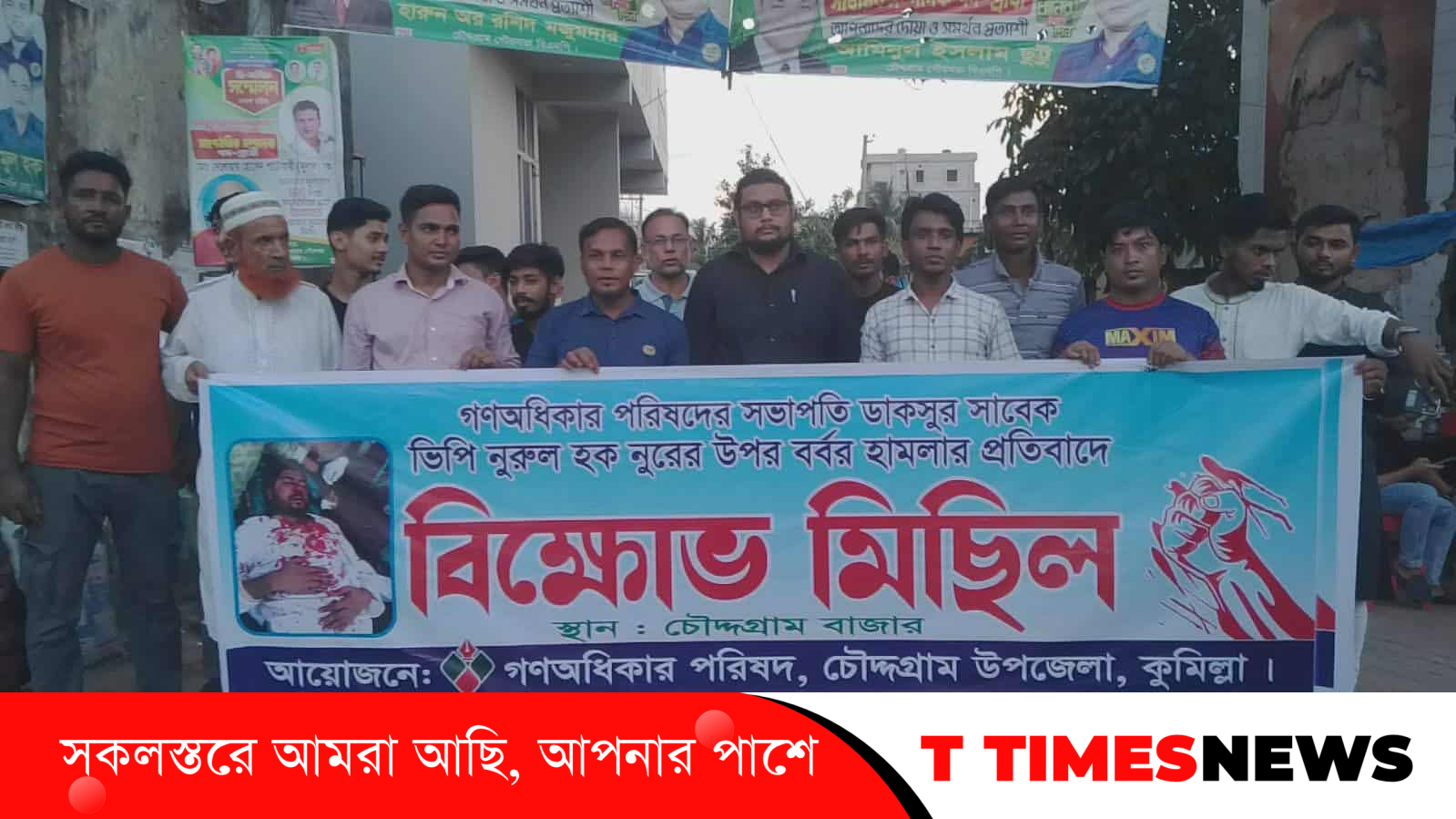 স্টাফ রিপোর্টার : বাংলাদেশ গণঅধিকার পরিষদের কেন্দ্রীয় সভাপতি, ডাকসুর সাবেক ভিপি নুরুল হক নূর এর উপর রাজধানীতে নৃশংস হামলার প্রতিবাদ ও দোষীদের অবিলম্বে গ্রেফতার এবং শাস্তি নিশ্চিতের দাবিতে কুমিল্লার চৌদ্দগ্রামে বিক্ষোভ মিছিল অনুষ্ঠিত হয়েছে। মিছিলটি ঢাকা-চট্টগ্রাম মহাসড়কের চৌদ্দগ্রাম বাজারের গুরুত্বপূর্ণ স্থানগুলো পদক্ষিণ করে।